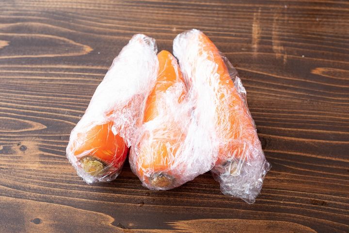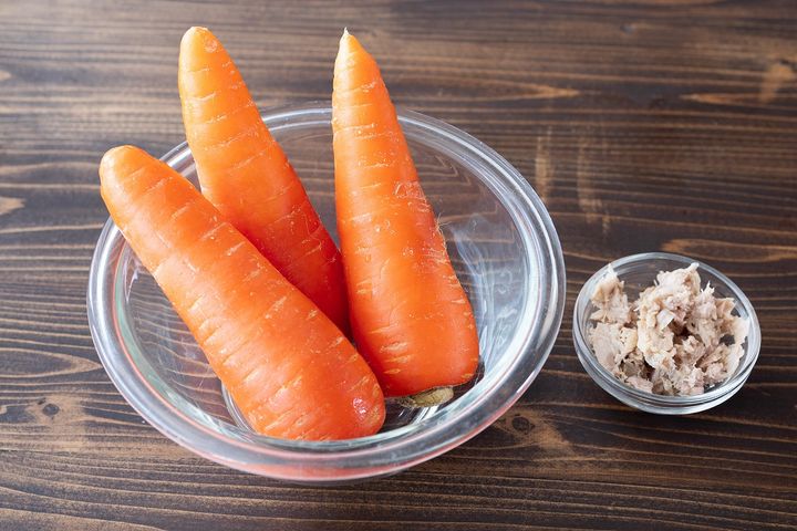 1. にんじんはラップで包み、電子レンジ(600W)で8分加熱する。