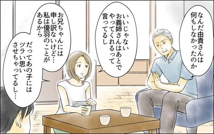 義妹は、由貴がフリーランスで自宅で仕事をしているのだから介護は引き受けるべきと主張する。