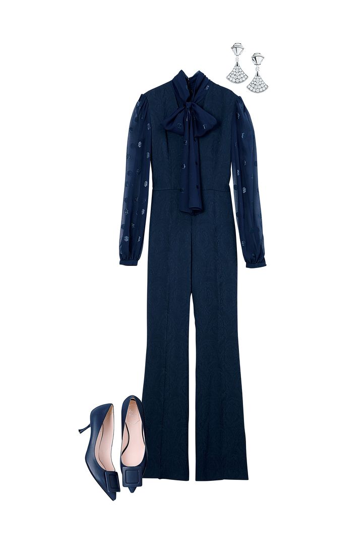オールインワン¥705,100(エトロ/エトロ ジャパン) バッグ¥477,400(ジャンヴィト ロッシ/ジャンヴィト ロッシ ジャパン) 靴¥137,500(ロジェ ヴィヴィエ/ロジェ・ヴィヴィエ・ジャパン) ピアス¥2,376,000(ブルガリ/ブルガリ・ジャパン)
