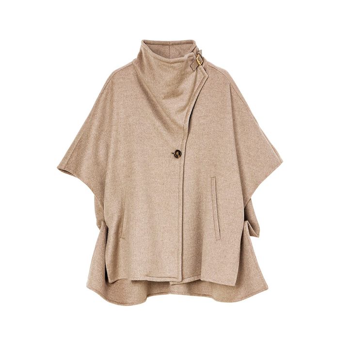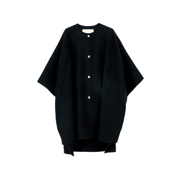 極細のベビーカシミヤで仕立てたコクーンシルエットのケープは滑らかな質感が魅力。軽量でありながら、保温性を兼ね備えた逸品です。