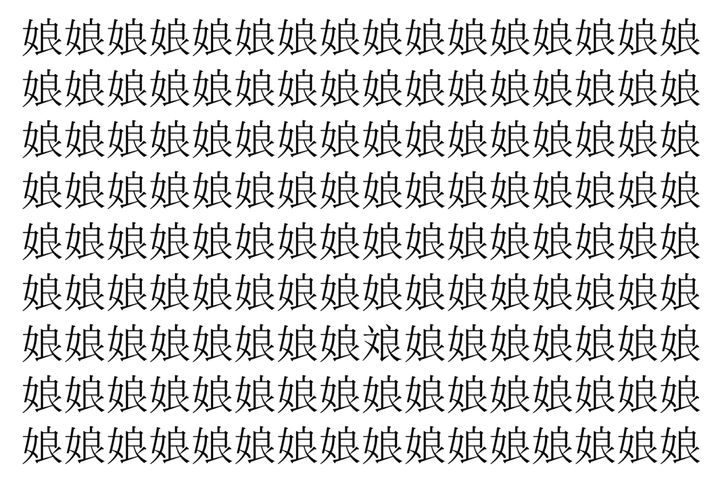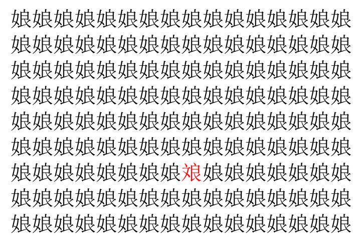 2. 【脳トレ】「娘」の中に紛れて1つ違う文字がある!?あなたは何秒で探し出せるかな??【違う文字を探せ!】