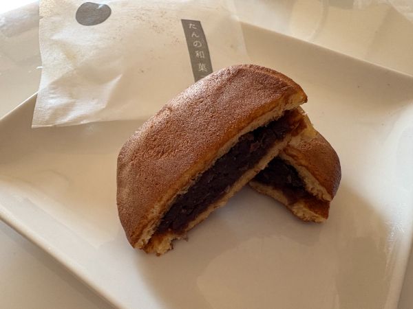 しっとりとした薄手の皮に、粒あんが端までたっぷりと挟まれています。上品な甘さと、もっちりした食感の皮は、まるで和風パンケーキのよう。 小豆のコクが詰まった濃厚なあんこ、一口食べれば甘さが染み渡ります。