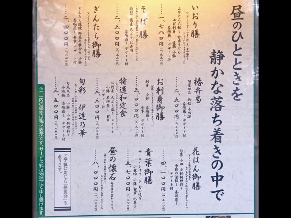 ランチメニューはこちら。1000円台からあり、お膳やお弁当、懐石料理などどれも豪華で美味しそう〜。 この日選んだランチはというと・・