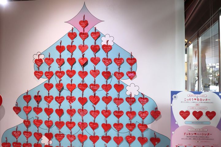 会場に入ると真っ先に目に飛び込んでくるのは、クリスマスツリー型に飾られた「こっそり♡告白レター」。ハート型のカードには「送りたいけど、送れない」「いつか絶対叶えたい」そんな秘めた想いが書き込まれています。“こっそり”がコンセプトということで、恋愛の願いや将来の夢を書いている方が多く、前向きなパワーをもらえました。
