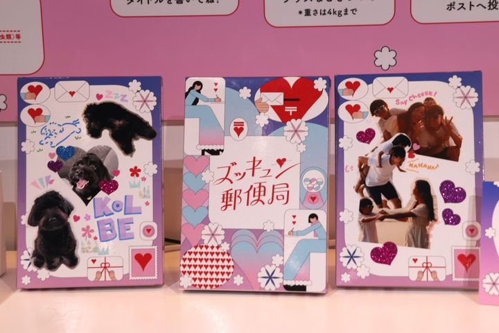 さらに会場内を進むと、写真やシールでデコレーションされたB5サイズほどの箱が並んでいます。実はこちら、「ハコニコ便」という新サービスなのだそう。