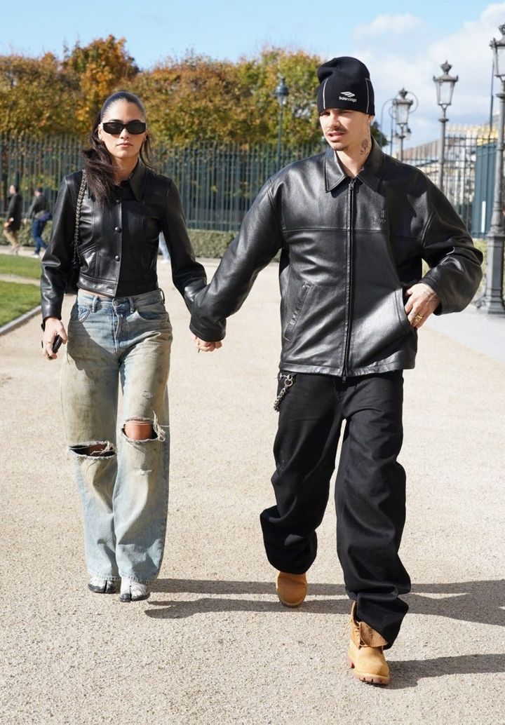 ビーバー夫妻のデートスタイルは、いつもストリートの注目の的。ヘイリーはNBAチームのニューヨーク・ニックス×「キス(KITH)」のコラボレザージャケットをオーバーサイズで羽織り、メンズライクな魅力をまとった。いっぽうのジャスティンもクリームカラーのパーカーとバギーパンツでボリューム感をリンク。