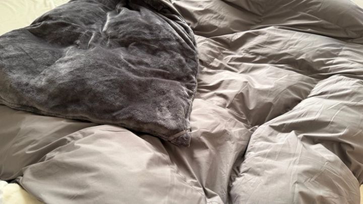 羽毛布団って入眠時はぬくぬく感がたまらなく最高ですが、気づくとやっぱり熱がこもり過ぎるようで、暑がりな私には、長時間それを静かに掛けておくこと自体が不可能。結局、明け方近くになると肌寒さを感じ、渋々、薄目を開けて首まで掛け直すパターンの繰り返しでした。