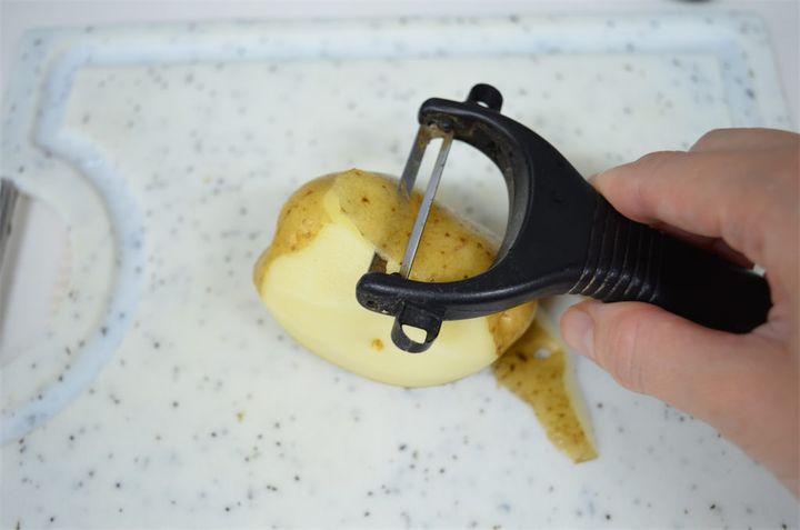 1. じゃがいもは皮を剥き、軟らかくなるまで水から煮たらボウルに移してマッシャーなどで潰す。