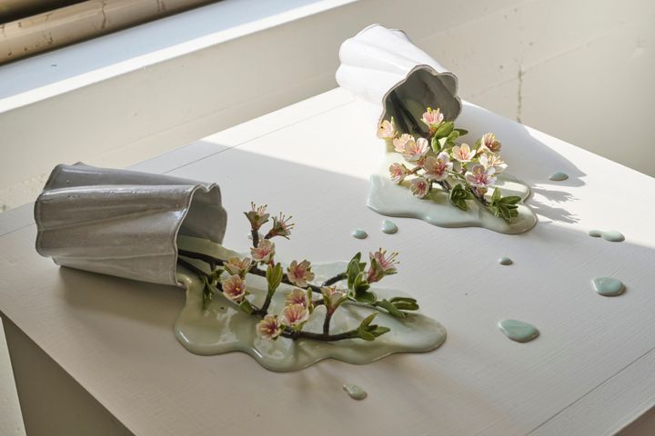〈写真〉倒れた花瓶や水滴、花まで繊細に仕上げられたセレナの作品。