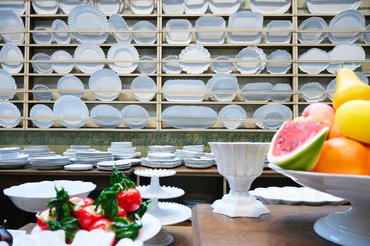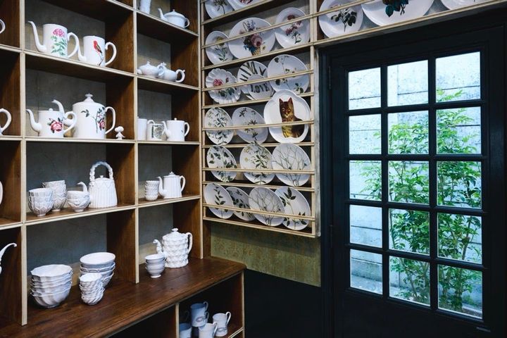 〈写真〉器はすべてパリ市内にある工房で、一つずつ職人の手によって作られている 。ショップでは小皿やインセンスホルダー、カップや大皿まですべてのコレクションが見られる。