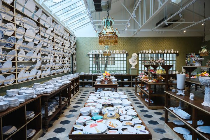 パリの約5倍の広さという広々とした店内には、彼らのアイコンである繊細な白い陶磁器や、フレグランス、キャンドル、ステーショナリーのほか彼らが買い付けたさまざまなインテリアアイテムが所せましと並ぶ。