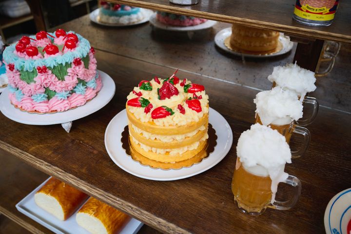 〈写真〉イヴァンが「トロンプ・ルイユ(だまし絵)のよう」と語る食べ物の形をしたユニークなキャンドル。大きなチーズの塊やローストチキンなどモチーフもさまざま。