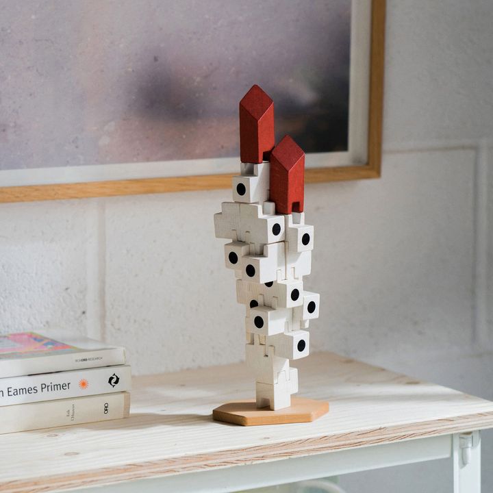 建築家の黒川紀章が設計を手掛け、2022年に惜しまれつつも解体された伝説的な「中銀カプセルタワービル」。この建築をオマージュしたスタッキングトイが登場した。21個の木製ブロックを組み合わせて積み上げるとタワーが完成する仕組みだ。建築好きが集まった際のカンバセーションピースとして、もしくは組み立てて部屋のオブジェにしても楽しい。