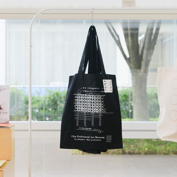 普段美術館へ行かない人々も入りやすく、みんなが気軽に楽しめる美術館をめざした、大分県立美術館(OPAM)。設計は坂茂が手掛けており、開放的なガラス貼りと大分県の竹工芸を彷彿とさせるデザインが特徴だ。この建築のラフスケッチがプリントされたオリジナルトートバッグは、コアな建築好きにはたまらないマニアックな逸品。単なる建築柄ではなく、建築家・坂茂のスケッチをそのままプリントしてしまうというユニークなバッグは、建築好きへのお土産にぴったり!