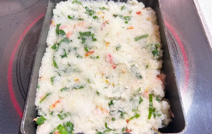 大根の水分を生かしながら、粉のつなぎでまとめることで、独特のもちもち感が生まれます。