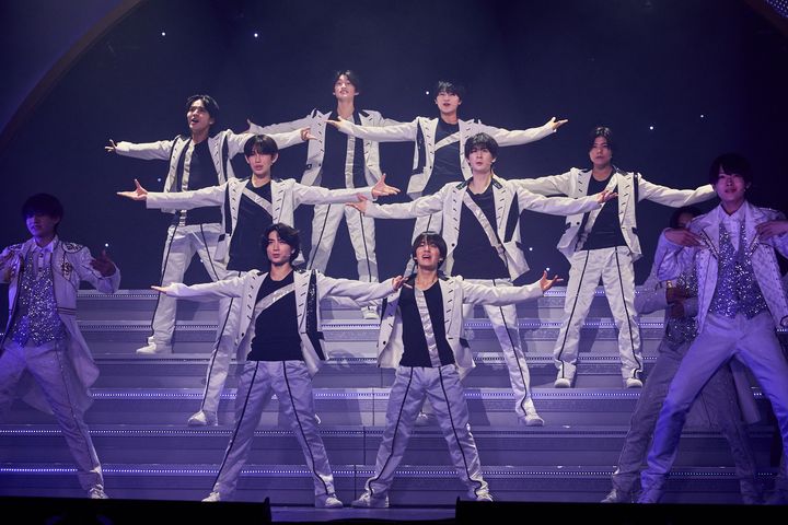 会⾒では阿達さんが「少年隊さんのメドレーでは、『仮⾯舞踏会』をやらせていただいたんですけど、実際に少年隊さんが着ていたジャケットを着させていただいて。軽い素材なのに重いというか…。歴史が詰まってるので、その重みと戦いながら。実際にご本⼈たちが踊られてる映像が(後ろに)流れる中、⾃分たちも⾒てもらえるように、めちゃくちゃ気合を⼊れて頑張っている」と話し、千井野さんと渡邊さんも「マジでそう」と、すかさず同意する姿も。