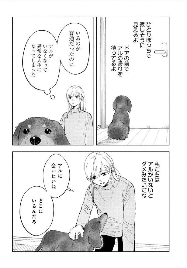 余命1カ月と診断された大好きな愛犬・アル。17年間、一緒にいろんな場所に行って、いろんなことをしたよね。どこに行ってもなにをしてても、いつもアルは私だけを見ててくれた。耳が聞こえなくなっても、目もあんまり見えなくなっても、それでも私を探してそばにいてくれたね。最高に楽しくて幸せだったアルと過ごした17年間。でも思い返すと全然時間がたりなかった――。なによりも大切だった愛犬との別れを描いた『アルへ』。いつか訪れる愛犬との別れのとき、あなたは何を思いますか。