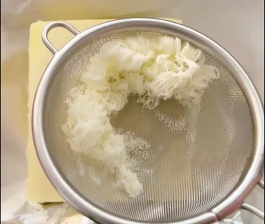 まず、以下の写真のように茶こしでバターを削ってください。