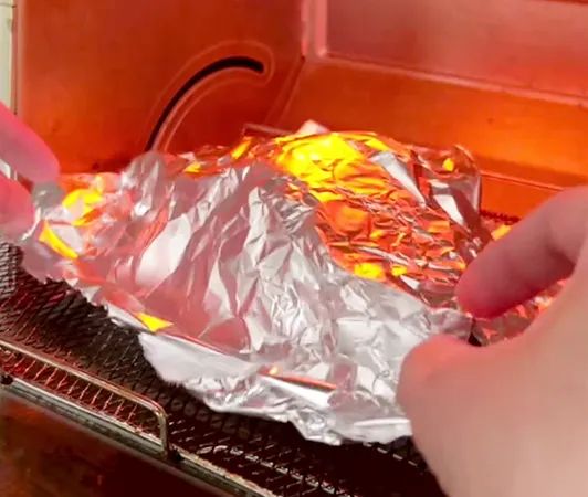 2分加熱したらアルミホイルを外し、さらに30秒加熱すると、サクサクの食感が復活するそうです!