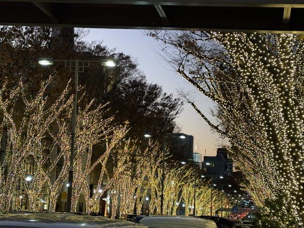 表参道ヒルズから一歩外に出ると、ケヤキ並木約1kmが約90万球のLEDで照らされる冬の風物詩「表参道イルミネーション」も広がっています。