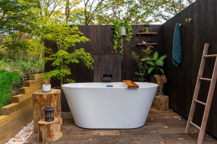 森と池に囲まれた立地に、客室は「アースボート」最大となる19棟。全棟にフィンランド式プライベートサウナを備え、好きなタイミングでサウナが利用できる。さらに、那須湯本の硫黄泉を楽しめる共用露天風呂やプライベート露天風呂付き棟もあり、大切な人や家族と自然のなかでゆったりとした時間を過ごすことができる。共用の露天風呂のほか、一部の客室には専用の露天風呂を備えた。料理は那須の地元食材を厳選した夕食・朝食をオプションで用意。地域に根ざした味わいを通して、「那須らしさ」を五感で感じたい。