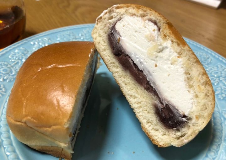 香り豊かなしっとりしたパンで、こしあんとホイップクリームがたっぷり入っています。