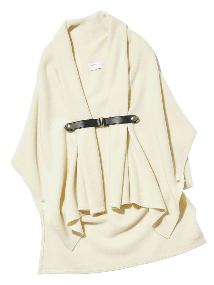 テクニック要らずで巻けて時間がない朝を助けるケープコート。360度どこから見ても着映えなシルエットが頼れる相棒に。甘々なビジュアルもニッシュなベルトで程良くシャープに仕上げます。