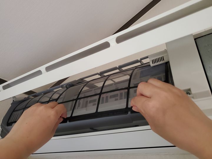 エアコンは室内の空気を取り込み、冷風や温風にして放出します。ところが、フィルターにホコリが溜まっていると十分な量の空気を取り込めません。