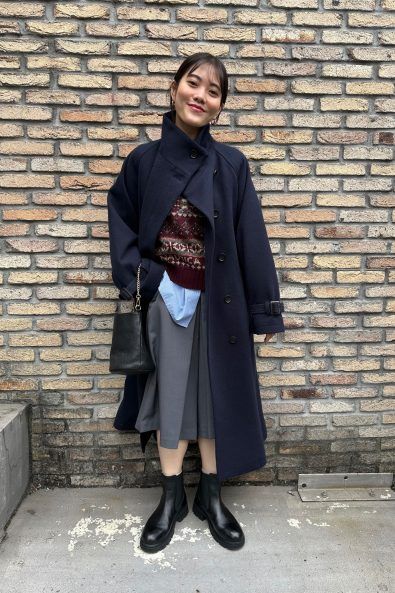 【スナップ】ウーリーコートが主役の冬レイヤード。フェアアイル柄で季節感をプラス