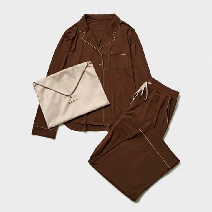 「長谷川京子さんが手がけるナイトウェア。とてもしっとりとした素材で本当に着心地がよく、カッティングもどこか色気を漂わせるフォルムになっていてすてき」