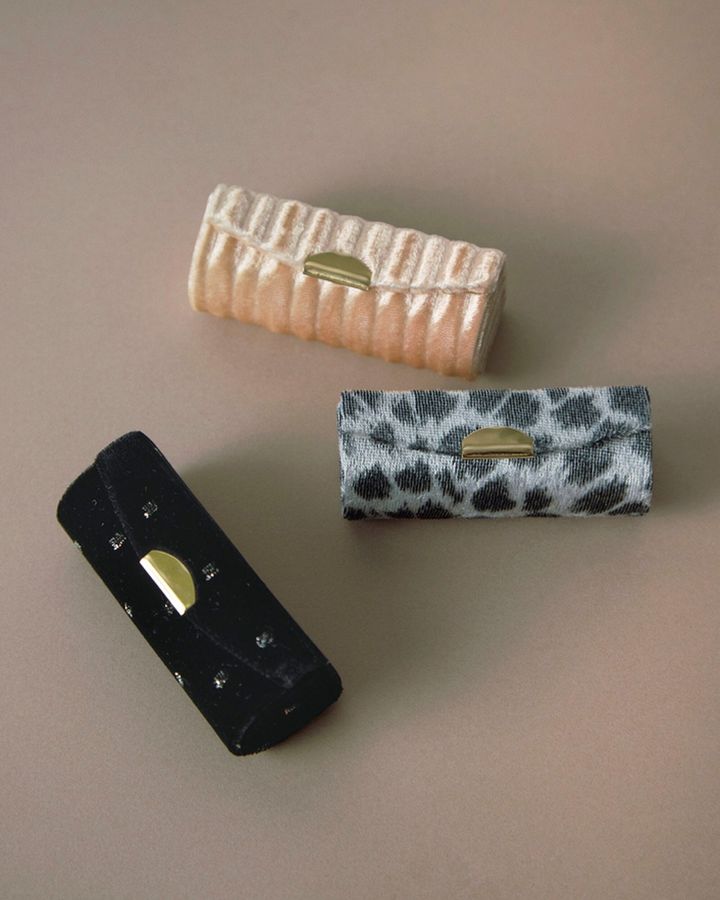 「ジュエリーブランドが手がけており、デッドストックのベルベット生地を活用したその表情やデザインもすてき。ジュエリー好きの友人へのギフトに」