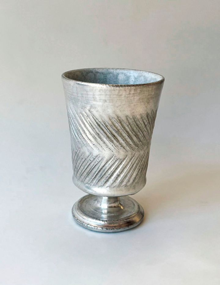 「1点1点手づくりで制作される、陶器にシルバーを施した器が特徴の谷井さんの作品は、経年変化の味わいも楽しめます。ホリデーシーズンの上質なひとときに」