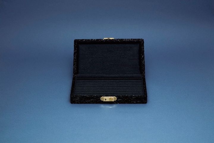 「ビロードを専門に作る京都の老舗、杣長とアドリン ヒューとのコラボレーションアイテム。持ち運びやすく、リングのほかにネックレスも入れられるサイズ感」