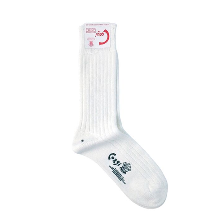 「シンプルな白のリブソックスは実用性もあってかわいくて、男性にも女性にも贈りたいギフトです。老舗英国ブランドで、王室御用達のお墨付き」