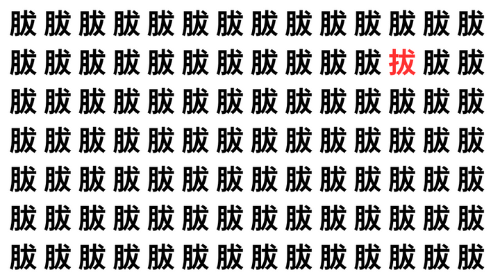 たくさんの「胈」の中に、よく似た別の漢字が1文字だけ隠れています。