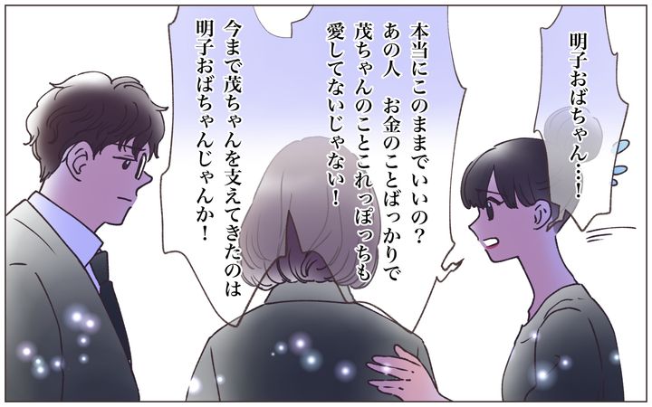 まるで、わが家がお金目当てで茂ちゃんといたかのように……。