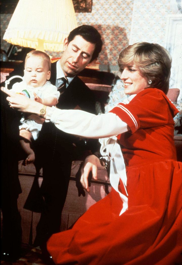 生まれたばかりのウィリアム王子をあやすチャールズ皇太子とダイアナ妃
