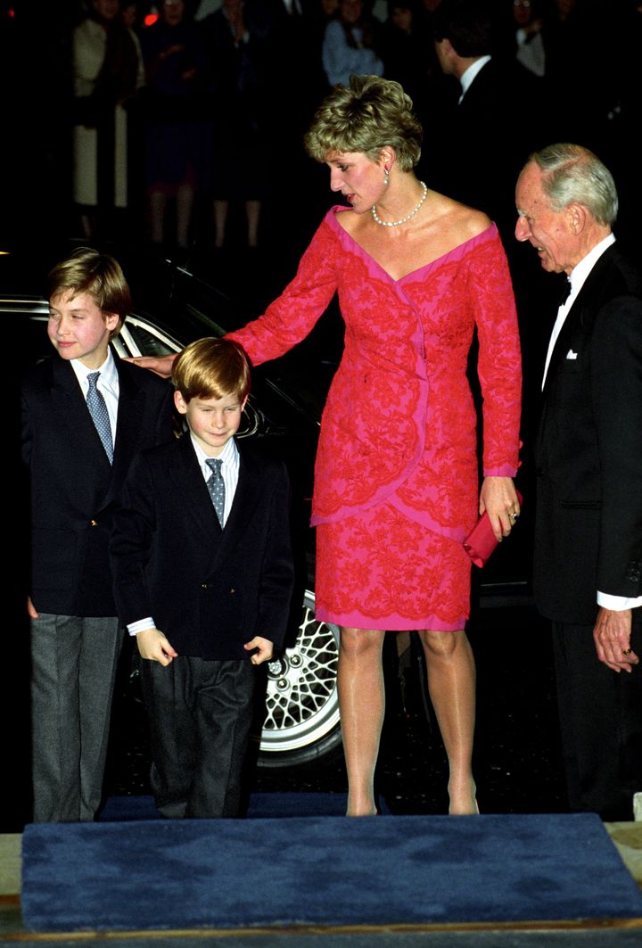 ロンドンのロイヤル・アルバート・ホールで開催されたイベントに出席したロイヤルファミリー(左から、ウィリアム王子、ヘンリー王子、ダイアナ妃)