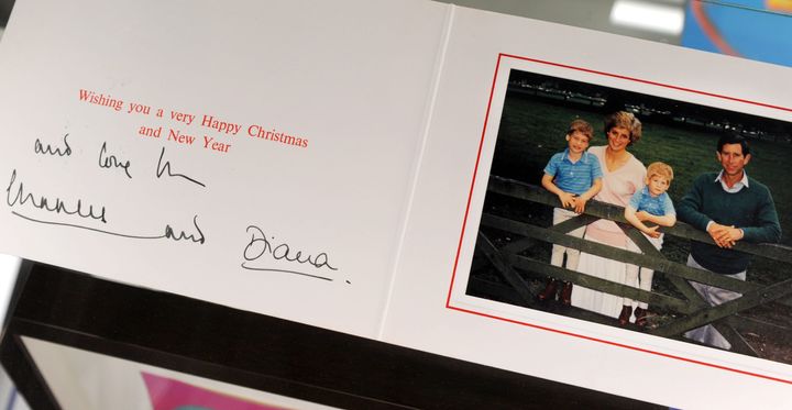 チャールズ皇太子一家のクリスマスカード(左から、ウィリアム王子、ダイアナ妃、ヘンリー王子、皇太子)