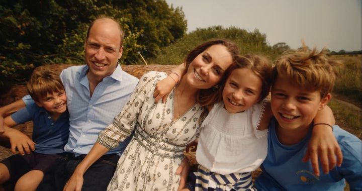 数カ月前に公開した休暇中の家族の様子を収めた動画の一場面をクリスマスカードに使用したウィリアム皇太子一家