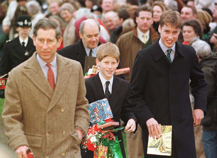 ダイアナ妃が亡くなった年のクリスマスをサンドリンガムで過ごしたチャールズ皇太子、ヘンリー王子、ウィリアム王子