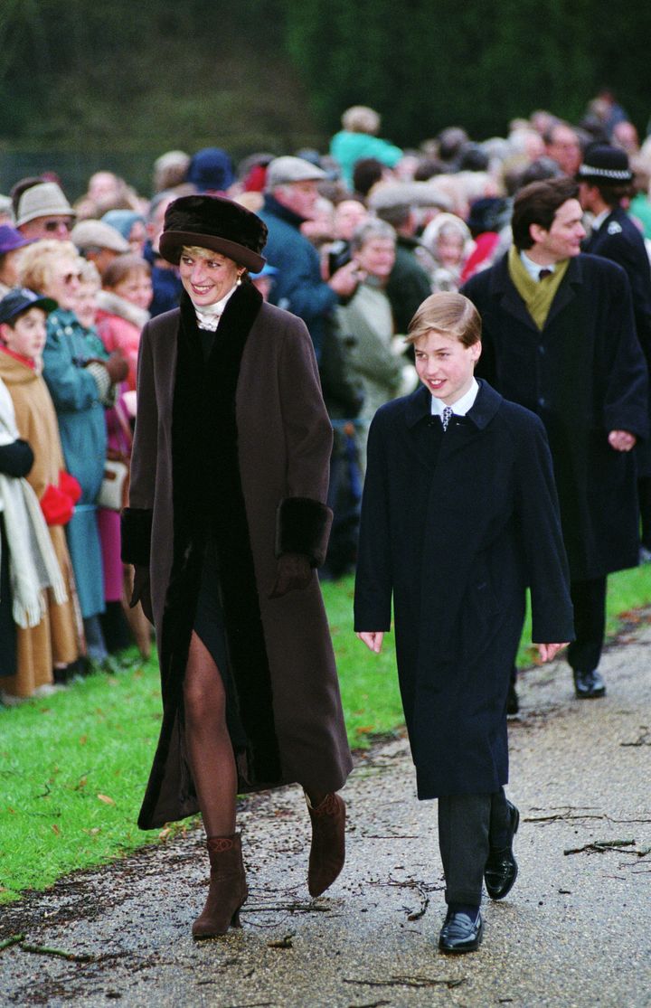 クリスマスの礼拝が行われる教会に向かうダイアナ妃とウィリアム王子