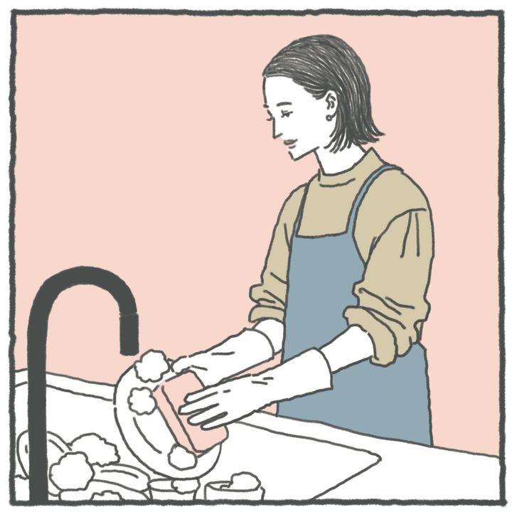 面倒でもやらなくてはいけないことに向かうとき、マインドフルに行うと決めてみてください。2、3回呼吸し、手をゆっくり動かしながら丁寧に汚れが流れていく様子などを感じます。集中力が高まるとマインドフルネスの効果が上がりハッピーに。