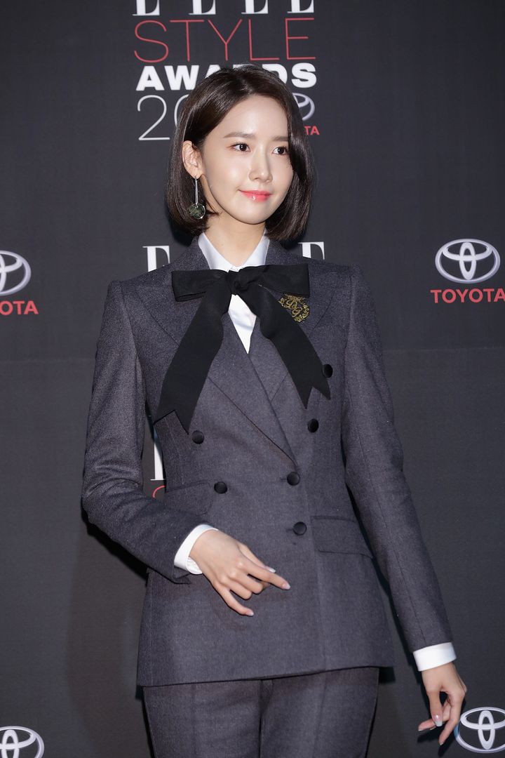 韓国版「エル・スタイル・アワード」には、コンパクトな内巻きボブヘアで登場。ダークトーンのヘアが透き通るような色白肌をさらに引き立て、洗練度がグッとアップ。
