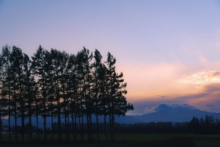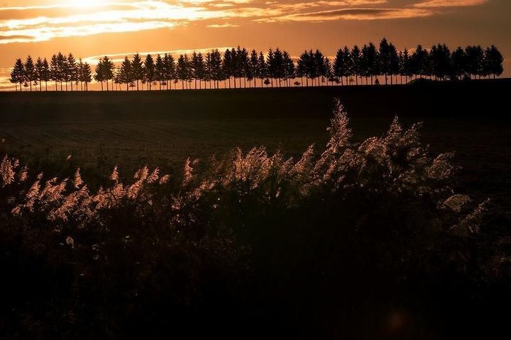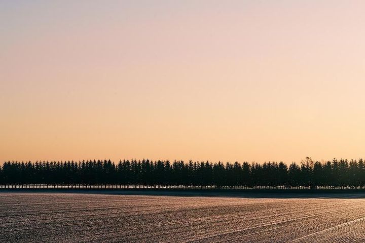 僕は朝方や夕方に見ることができる、シルエットになる防風林がとても好きです。