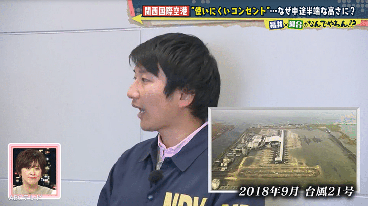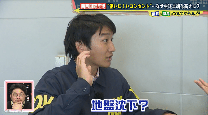 海のそばにある関空が、2018年に台風で冠水被害を受けたことから、福井アナはコンセントが高い位置にある理由を、「高潮・津波から守るため」と推測。一方の河合は、「家の冷蔵庫とか洗濯機もコンセントの位置は全部高い」ということで、「コンセントの横に何か置いてあった」と考えた。