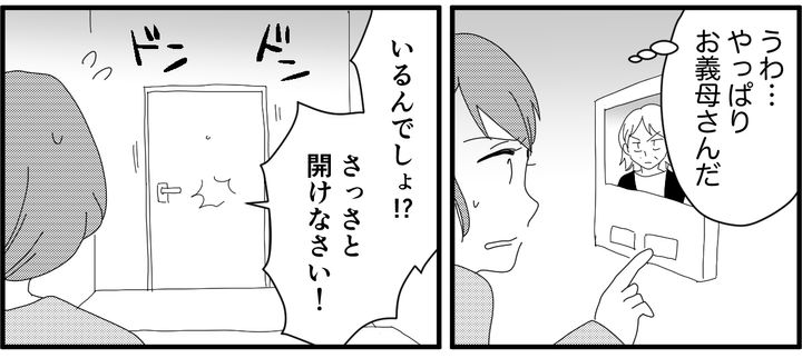インターホン越しに義母の声。アポなし訪問はいつものことです。居留守も通用しません。
