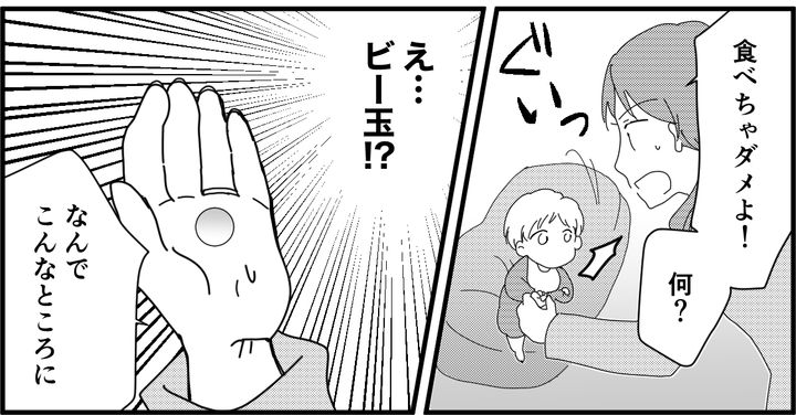 息子が何か小さなものを口に入れようとしているのに気づき、慌てて駆け寄りました。小さな手を開いてみると……ビー玉が握られています。