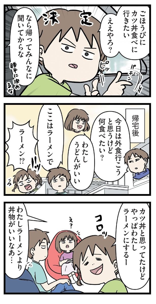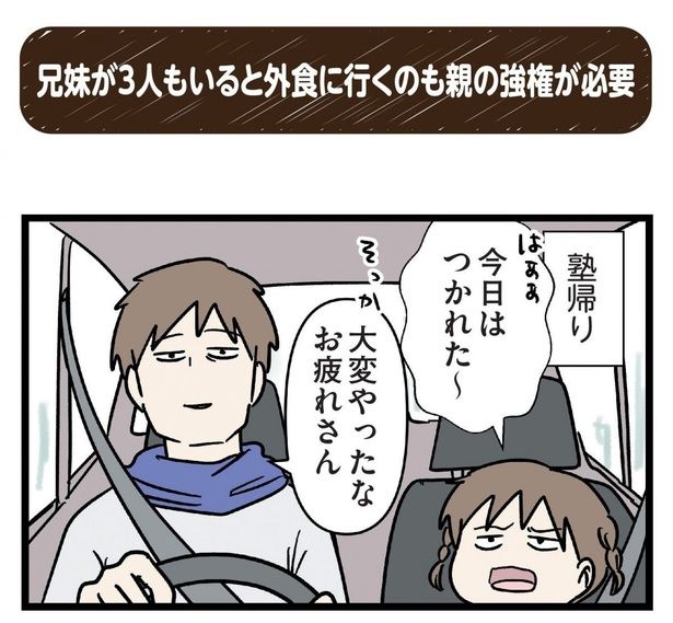 今日は外食! どこで食べるか揉める3兄妹に父が決めた最高の場所/みてや!小学生エムモトえむみの勝手きままライフ