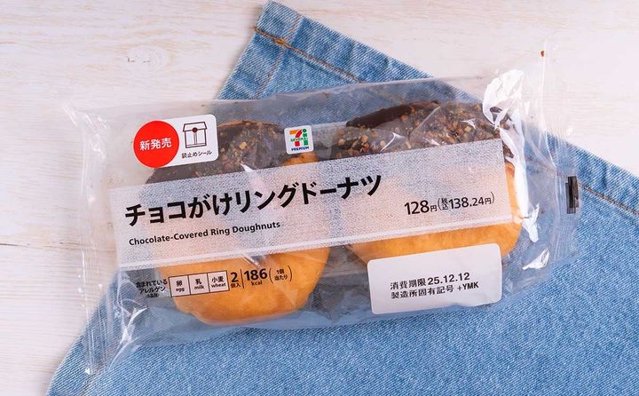 セブン-イレブンは2025年12月9日(火)に、「セブンプレミアム チョコがけリングドーナツ 2個入」(税込138.24円)を発売しました。